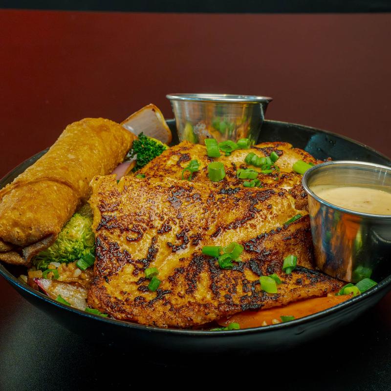 Premium salmon hibachi with vegetables. Served over your choice of fried or white rice, or Lo Mein, drizzled with our rich, flavorful sauces