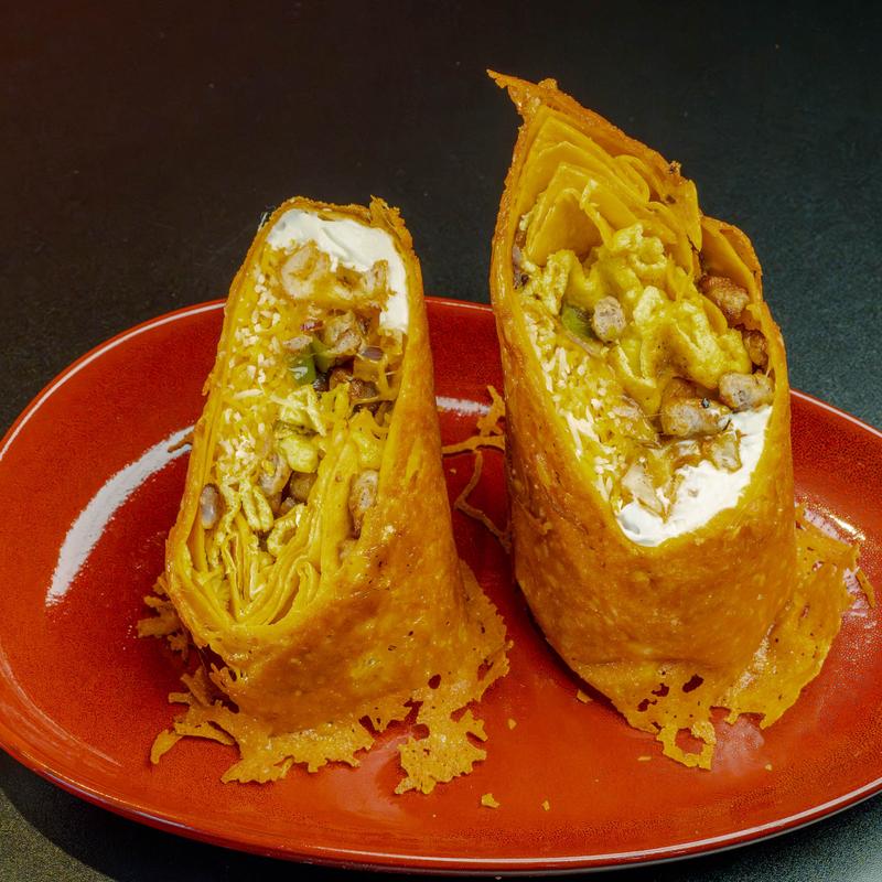 3 eggs with choice of bacon, ham, or sausage, peppers, onions, cream cheese, and cheddar cheese • Add: Grilled Cheese Shell +$2.00 | Sausage Gravy +$2.00
