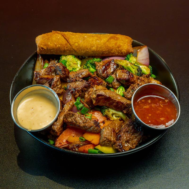 Sizzling, flattop-tossed hibachi bowls packed with tender grilled protein and vibrant vegetables. Served over your choice of fried or white rice, or Lo Mein, drizzled with our rich, flavorful sauces